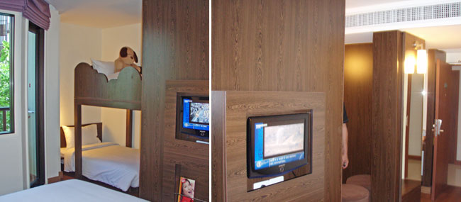 - 객실내 부대시설 : 개별 조절 에어컨디션, 인터넷 엑세스, 헤어드라이어기, 안전금고, TV등등이 구비되어있으며, 객실내 무료 2병의 식수의 냉장고