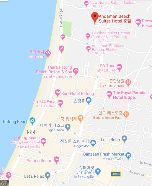 건물이 높은만큼 씨뷰룸을 다령 보유하고 있는 장점이 있고,호텔 들어가는 입구에 노천 식당및 이동 먹거리 장사들이 영업하는 "아룬쏨 시장",오랜 전통을 가진 닭고기덮밥의 대가 "브라일레",중저가 마사지샾으로 인기가 높은 "오리앤타라스파"를 끼고 있다.더불어 해변까지는 5분/정실론이나 방라로드까지는 도보 10분이면 이동 가능한 위치적인 장점이 있다.