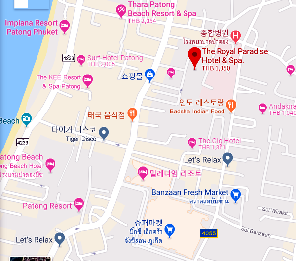 최고층의 유명 중식당인 로얄키친에서 내려다보는 야경이 좋아 식사는 물론 맥주 한잔하며 빠통의 야경을 즐기기에도 좋다.특히 호텔내의 파라다이스 타이스파장에서 여행사에 제공하는 스파 프로모션 가격이 착하다.