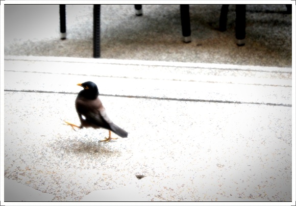 새가 많아요~ 겁도 없어요~ 접시에 담아온 음식 멋데로 날아와 앉아서