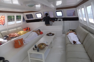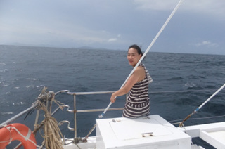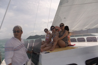 이렇게 9명이 썬카타마란에 몸을 싣고...