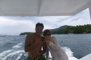 한시간 반~두시간 가량파도를 헤치고 라차섬까지 가는 동안, 이렇게 쌩쌩했던 저희 제일 맏언니는 배멀미로 장렬히 전사... 멀미전 후 ㅋㅋㅋ