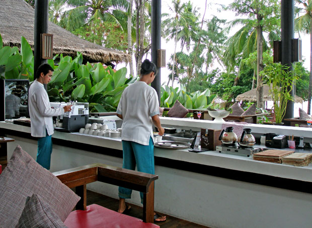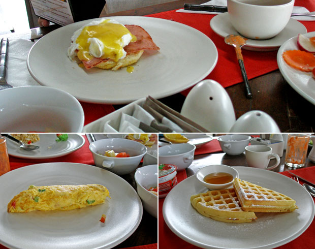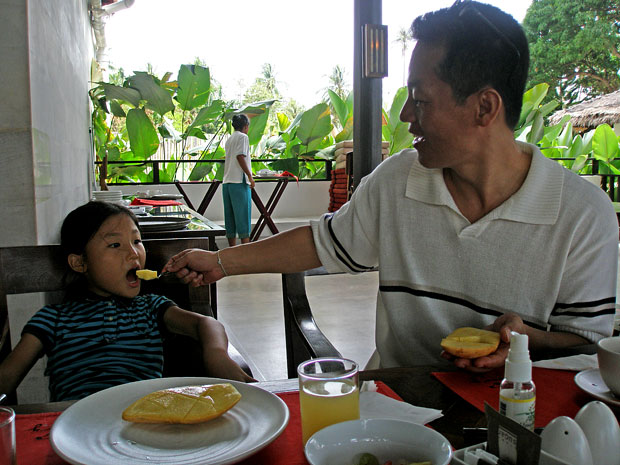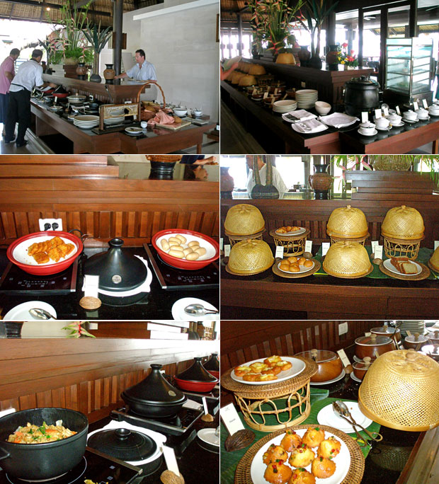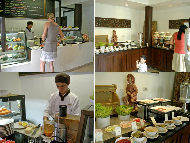 고급 리조트나 몇몇 풀빌라에서는 아침 조식을 주문받아 바로 해주는 있긴 하지만 그 경우 기본 뷔페가 없거나 있어도 그저 에 지나지 않은 듯 했지만, 이곳은 기본 뷔페도 종류별로 다양하게 정성을 드려 갖춰놓고, 막 주방에서 나온 계란 요리도 먹을수 있는것이 너무 훌륭했다..