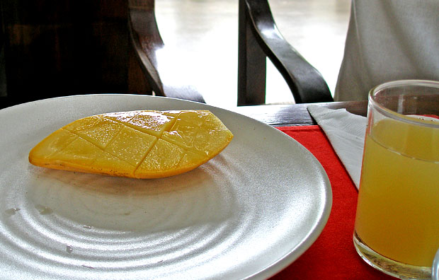 내눈에 안 보였는데, 생과일 갈아주는곳의 냉장고 안에 있다며 시원한 망고를 가져와 이렇게 맛나게 먹고 있다.