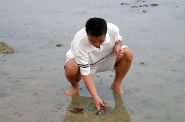 그 바닷가에선 몇몇사람들이 무언가를 열심히 줍고 있는것이 보였다. 우리 두사람은 아이들을 키즈클럽에 놓고 물빠진 바닷가로 향했다.