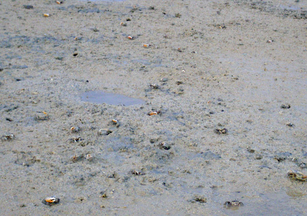 숨 죽이고 있으니 감시 선발대가 슬쩍 고개를 내밀더니 이상무 확인 신호를 보낸것인지 다시 여기저기 작은 구멍들에서 게들이 나오기 시작한다..^^