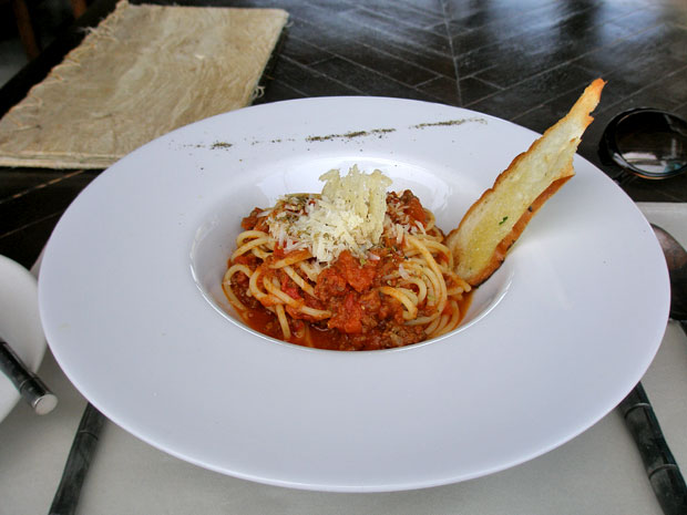 파스타라는 드라마에서 보면 스파게티가 나오기 전에 꽁짜 빵도 주더니만 코스가 아니라서 그런지 데코레이션처럼 얇은 마늘빵 한조각 꽂힌 달랑 스파게티 한접시와 물 한병..참으로 썰렁하다.