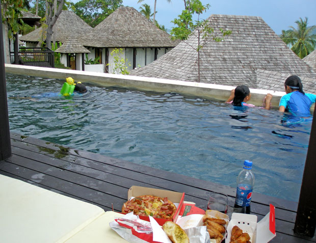 왠지 수영장에선 사온 음식을 펼쳐 놓고 먹긴 미안할듯...