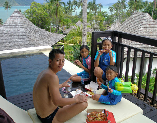 그 즈음 살고 있었던 그저 평범한 월 3000바트짜리 우리집과 별반 다를바 없는 패밀리 방갈로에서 정작 신혼인 우리들은 형님댁 세이들과 함께 잠을 잤다.