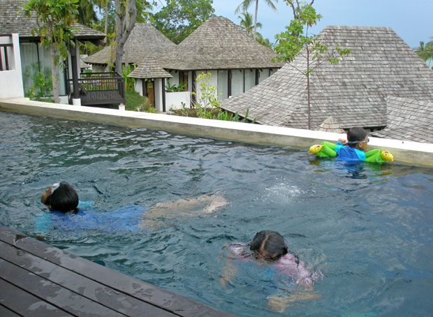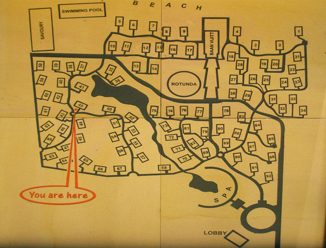 호텔은 총 92여개의 룸으로 디럭스룸, 프라임풀빌라, 위찟풀빌라, 패밀리빌라로 나누어지는 객실과 그 외 호텔 부대시설인 스파, 키즈클럽.인터넷카페.휘트니스를 겸한 Rotunda, 타이식당인 더반윗찟, 풀장, 조식레스토랑등등의 안내를 받았다.
