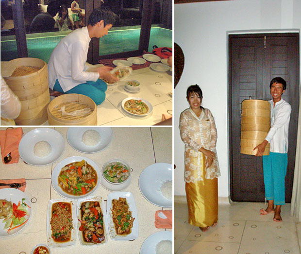 총 5가지 음식에 딸려온 흰밥 5접시, 그리고 카오팟...주문한 음식은 투숙객 20%할인 받아 1350바트가 좀 넘는다..