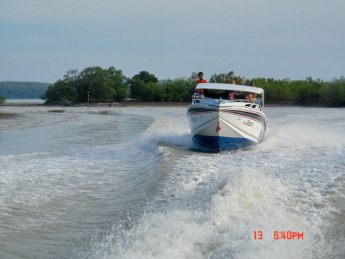 억수로, 대빠이(갱상도 사투리임)빠릅니다. 처음엔 다들 조금 무서운 듯한 표정이었지만, 조금 지나자 즐기더군요, 참 보트에는 대략 30명 정도가 승선했는데, 한국팀은 저희가족 5명 뿐이었습니다.(여행객들의 대부분이 팡아투어를 한 후 나중에 피피섬 투어를 하는 관계로.. 저희가족은 반대였죠.)