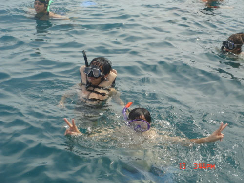 피피본섬 관광을 한 후 카이섬에 들어 스노클링을 한번더 했습니다. 시간이 넉넉해 한가롭게 수영도 하고 맛있는 간식(수박 등 각종 과일과 크래커, 음료수 등)도 먹으면서 모래사장에 찜질하며 낮잠도 잤습니다. 피로가 확 풀리는 듯(물론 조금 쉬셔야 합니다.)