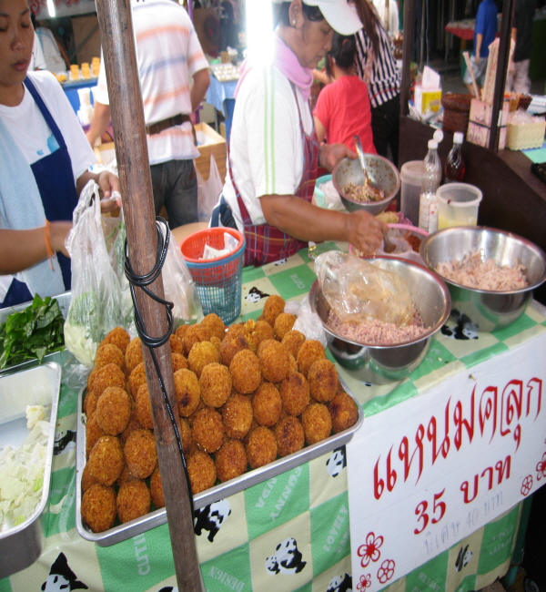(저거 튀겨주는줄 알았는데 동그란것을 뽀개서 가루로 만들어서 옆의 양념들 넣어서 먹는것이었습니다. 가져가면 40바트에요)
