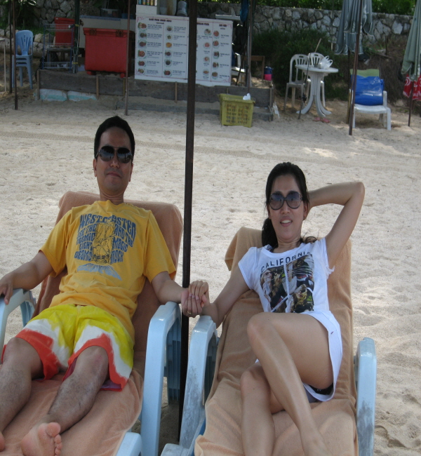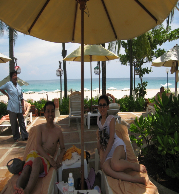 오전엔 그동안 밖으로만 돌아다녀서 호텔내의 시설을 이용하면서 휴식을 취하기로 하고 해변으로 비치타월들고 나가서 공짜로 생각하고 파라솔 자리잡고 있었더니 자리당 100바트네요. 한번내면 그날 하루종일 사용가능한것으로 보입니다.