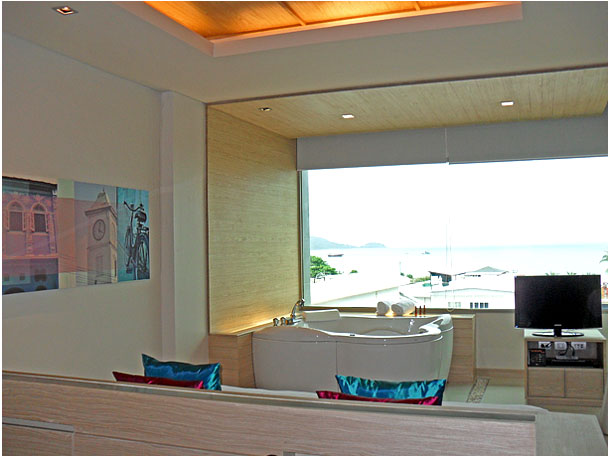 오픈 초대를 받았을때 한국에 있었기도 하였지만, 과부화가 걸린 정신 없는 파통에 무신 호텔이...하는 의문과 입구에 어지럽게 산재한 작은 샾들,마사지를 위해 호객하는 여성들이 있다는 고정 관념을 확 뒤집고 기존 파통 빌라가 있던 곳을 싹 뜯어 산듯하게 지어져 들어가면서 "어?"하며 전혀 기대 이상의 느낌을 받았다.