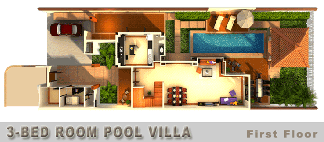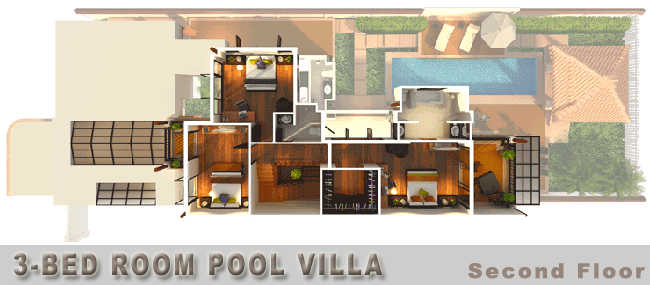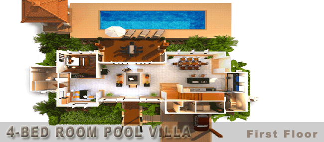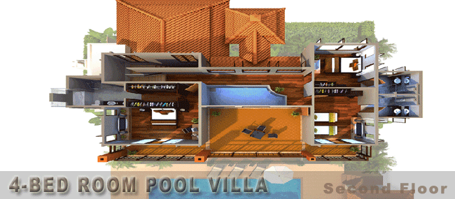 3) 4베드 풀빌라 : 604sqm (Living area 297sqm / Patio & Deck 259sqm / Pool 48sqm)