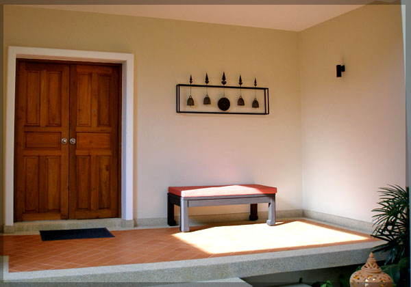 ★ 현관문을 열고 들어가니 바로 작은 서재가 있고, 서재 뒤로는 1층 욕실과 2층으로 올라가는 계단..그리고 정면엔 역시 거실과 주방 그리고 정원과 풀장이 있는 구조.