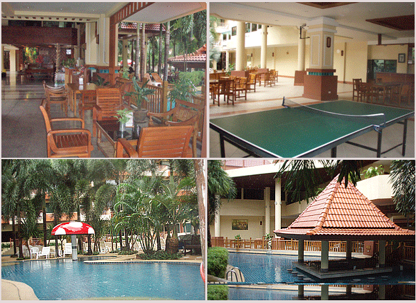 로비를 깃점으로 외부로 양쪽으로 건물이 다리 역활을 하는 듯하게 11자로 되어있고, 로비에서 수영장을 싸고 4개의 건물이 있다.