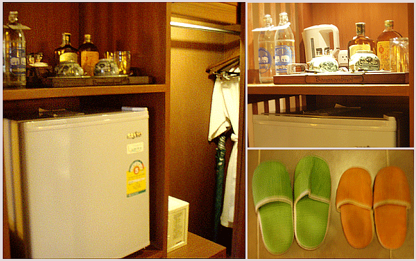 물먹는 하마인 우리가족에겐 턱없이 모자라지만 꽁짜물 두병, 물을 끓일수있는 포트와 커피, 옷장속엔 나이트가운, 안전금고..그리고 가져오고 싶었던 푹신한 슬리퍼가 잘 정돈 되어있었고...