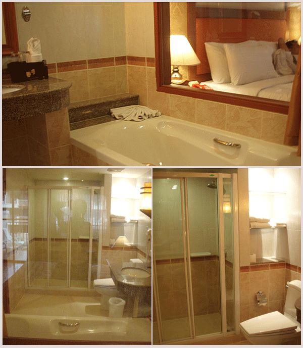 디럭스룸부터는 욕실에 욕조와 샤워부스가 분리 되어있다.