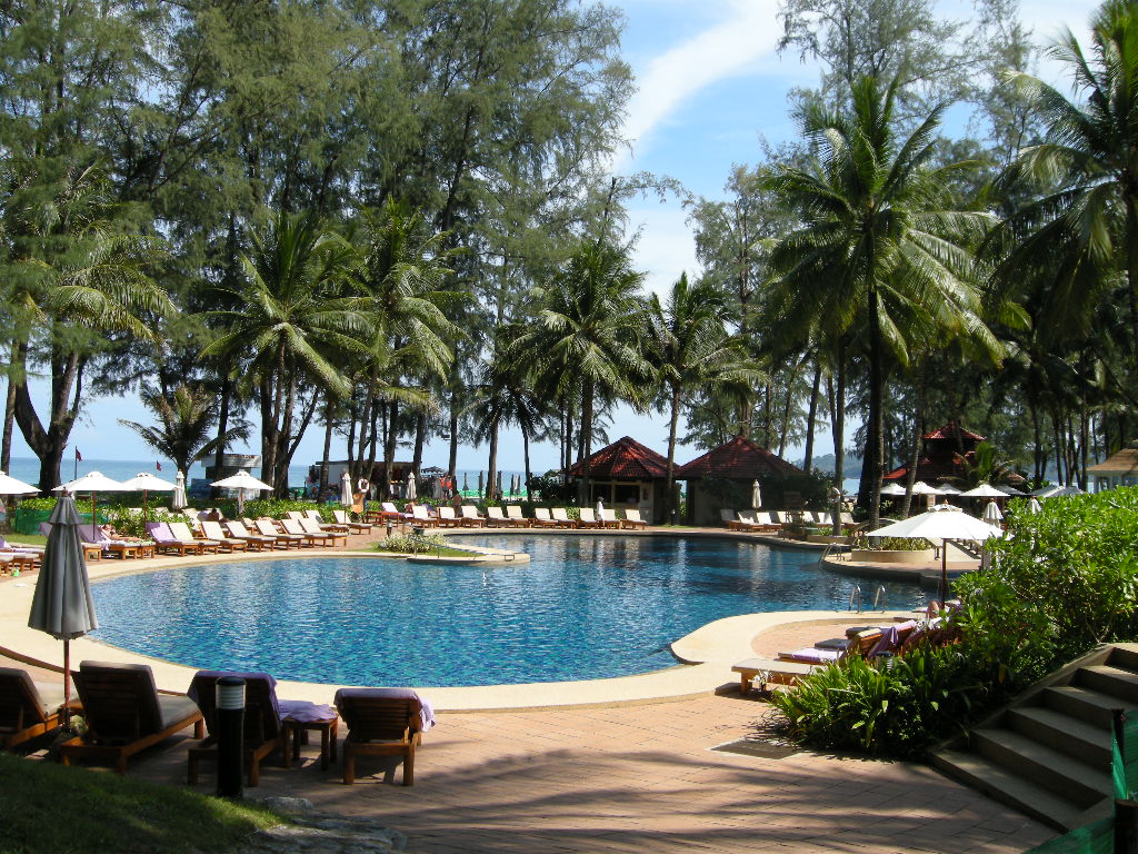 해변을 바라보고 오른쪽은 쉐라톤 , 왼쪽은 라구나 비치가 있다.