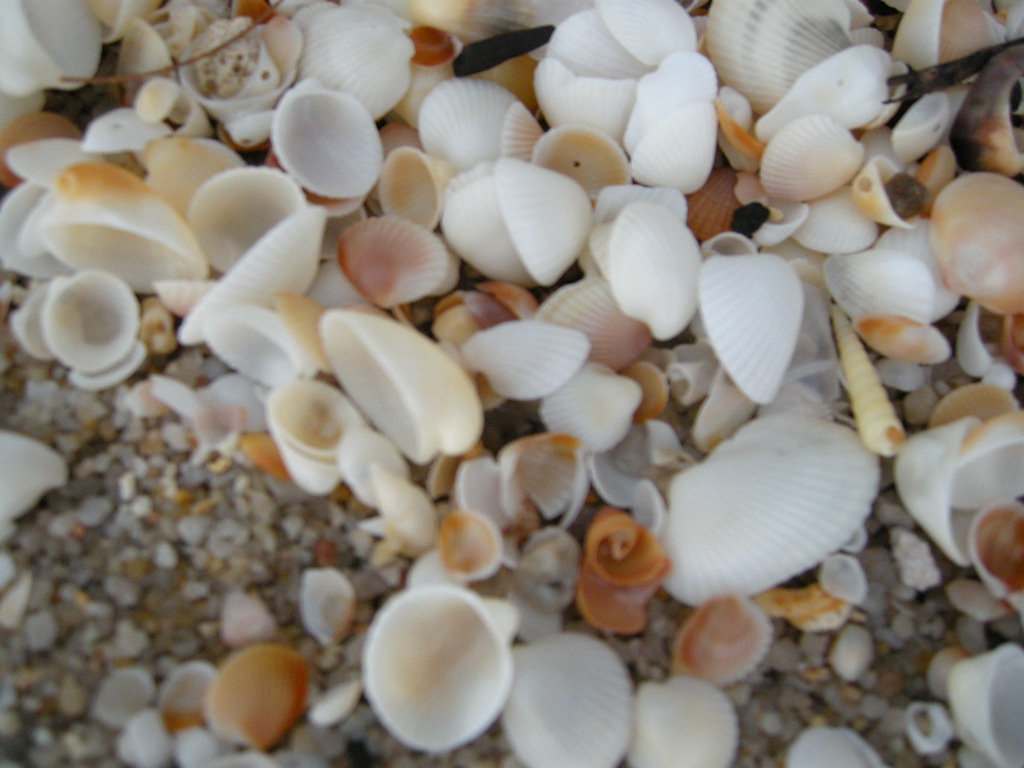 또 걸어가다 파도가 밀어낸 조개들을 만난다 .