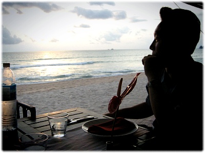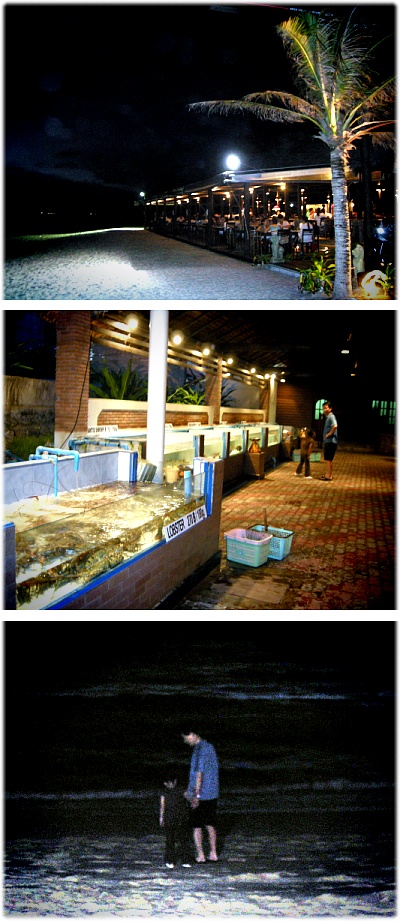 어두운 저녘 바닷바람을 맞으며 먹는 식사는