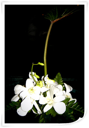로비를 뒤돌아보니 테이블위에 난이 꼽혀있다 .