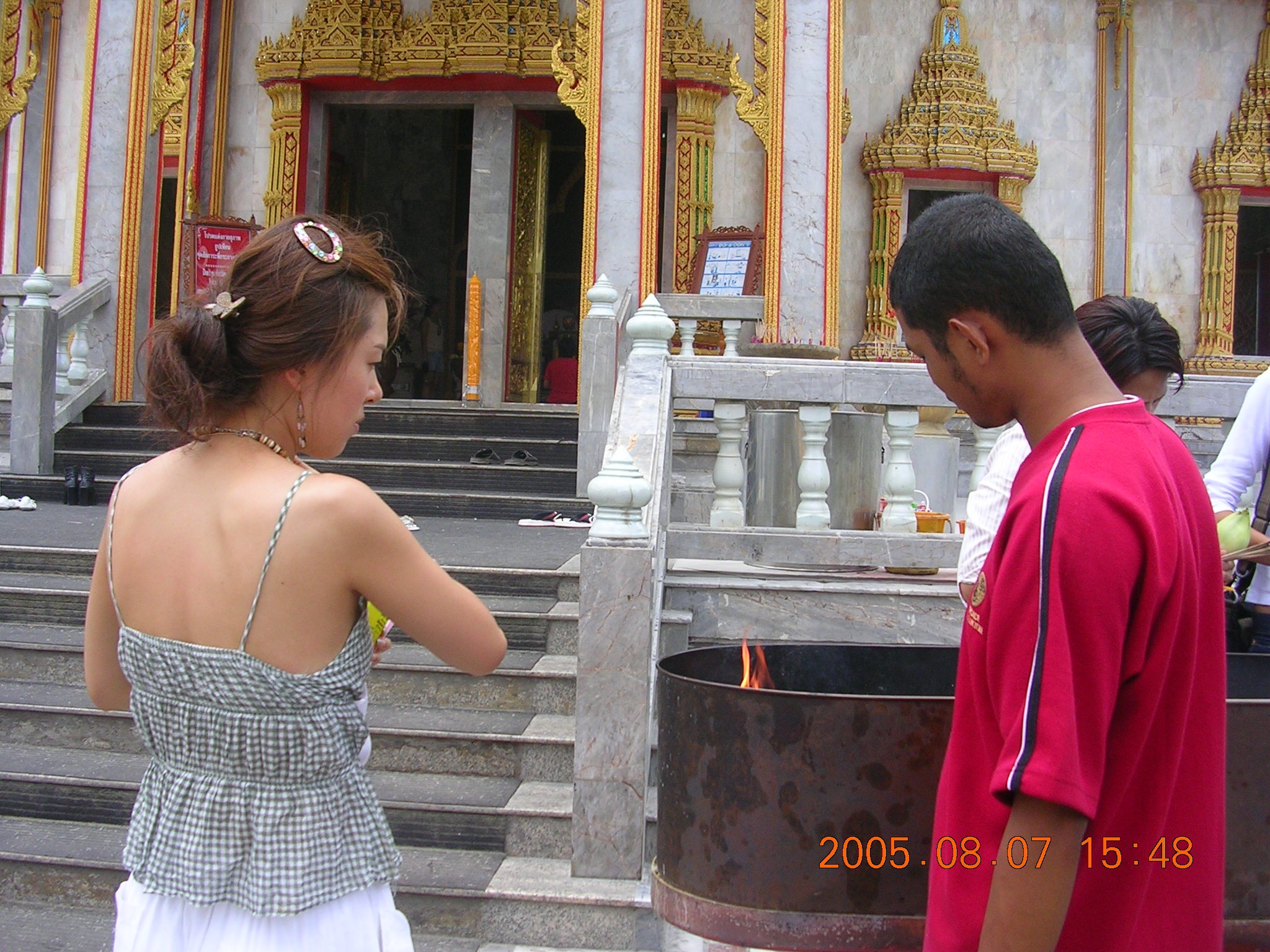 제일큰 사원을 나서니 동생은 음료를 사러가고 ..딴은 말없이 사라지고 없다~나만 덩그러니,,사방을 살피고 있다보니,,잠시후 딴이 양손에 연꽃 두개와 향 두개를 들고 나타나 동생을 찾는다,, 딴이 향에 불을 붙여주고