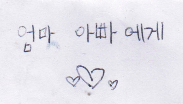 짧지만 아빠,엄마를 너무 행복하게 만드는 편지를 유경이가 엄마 지갑에다 꽂아 두었습니다..