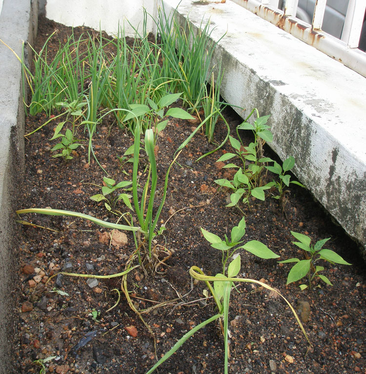 아내의 결실인 파와 고추가 열심히 자랐습니다.