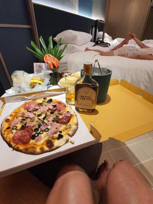 저녁은 테라조?룸써비스로 쿼트로피자 한판 시키고