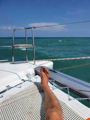 요트앞자리에 그물망에 앉아서 출렁이는 파도를 온몸으로 느끼며 바다와 탑승자가 하나가 된다고 할까요?
