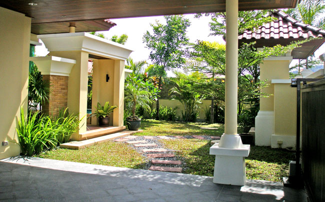 대문을 열고 들어가면 주차공간이 있고, 3-베드룸에 비해 크지는 않지만 역시 잘 정돈된 마당에서 현관으로 들어서게 되어있다.