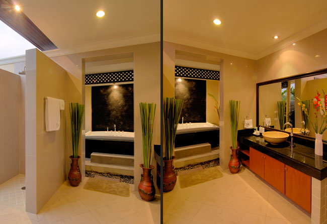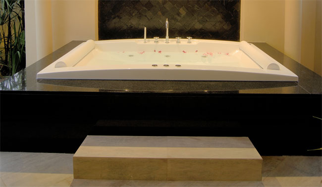 드레스룸을 지나 들어가면 오른쪽은 화장실 (이곳은 변기도 두개)과 세면대가..그리고 왼쪽에 침실쪽으로 자쿠지형 욕조가 있다...