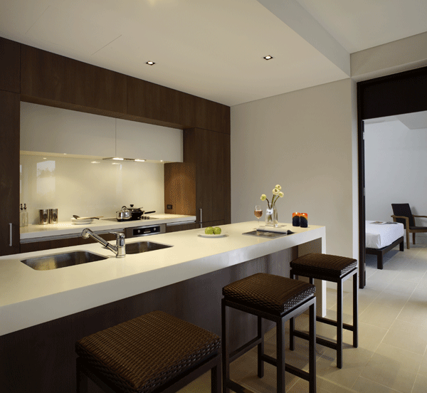 4베드룸은 3층으로 수영장을 중간에 두고 마주보는 듀플렉스 건물 구조로 1층의 경우 주방과 거실로...2층에 마스터베드룸을 포함한 3개의 침실..