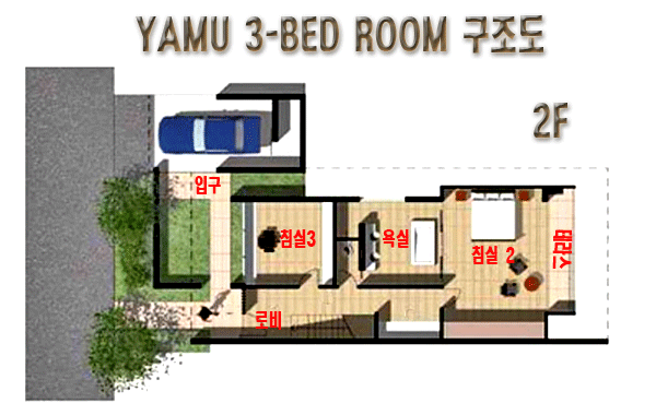 2층으로 들어가면 보이는 구조도이다...마스터 베드룸은 이곳 침실2라고 쓰여진 곳이다.