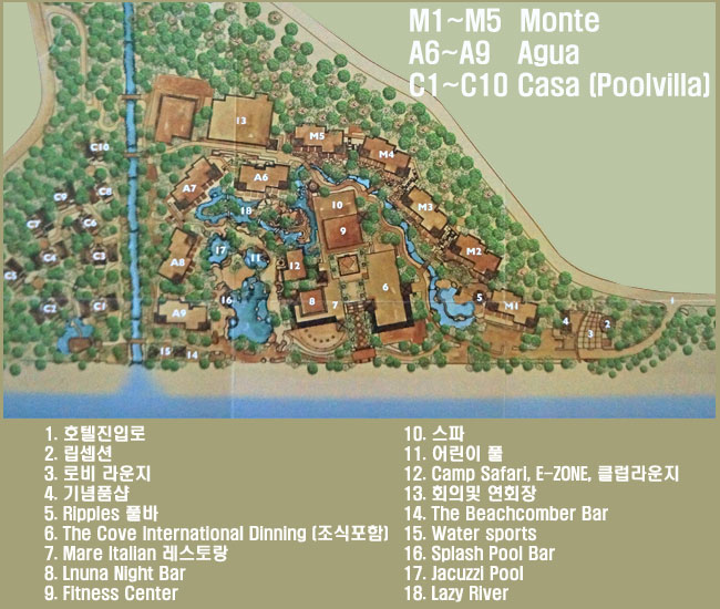 지금까지 돌아본 객실들은 이렇게 수영장을 끼고 위치해 있으며, 사진상으로 보이지 않는 오른편 산위로 풀빌라들이 위치해 있다.