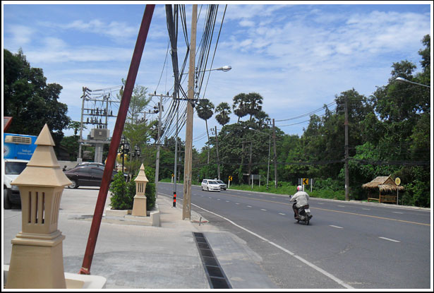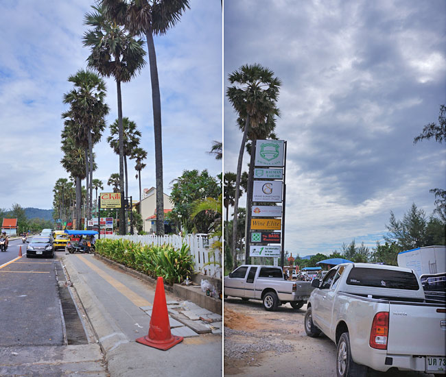 호텔에서 나와 오른편으로는 chile레스토랑으로 디올드푸켓 리조트로 들어가는 입구가 있고, 왼편으로는 힐튼으로 가는 방향의 도로가 있다.