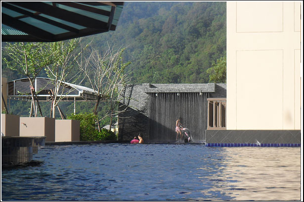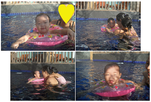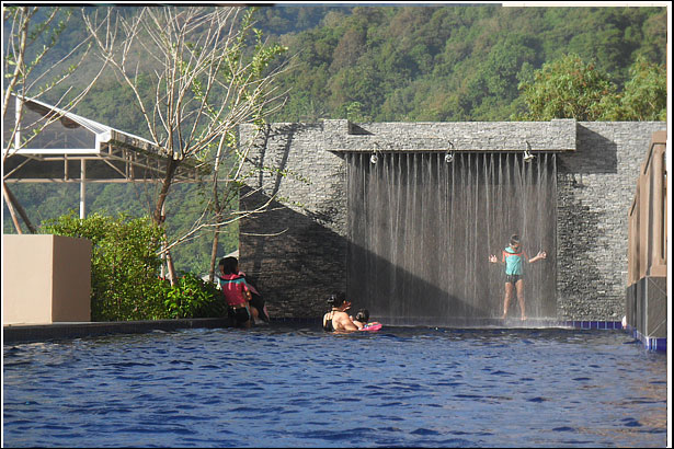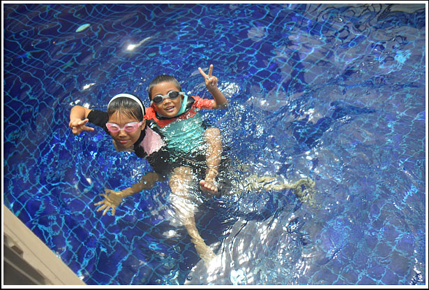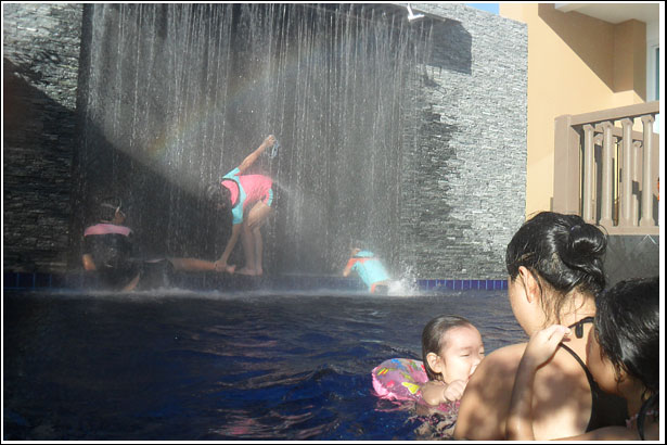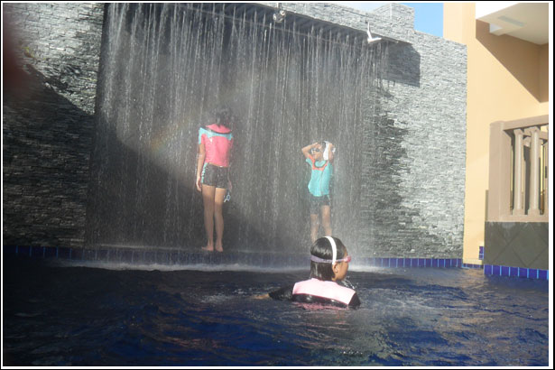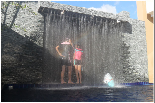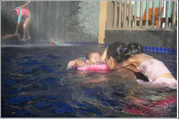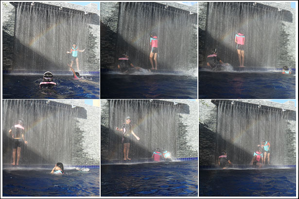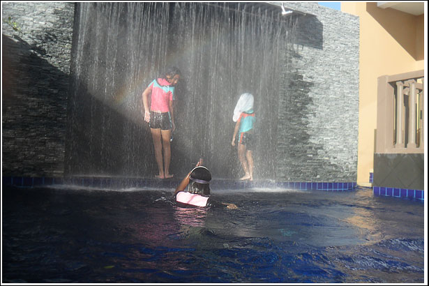수영장 양쪽끝은 한쪽은 어린이 수영장, 그리고 다른 끝은 저렇게 폭포안에 작은 틈사이로 왔다갔다 하며, 무지개 속에서 시간을 보내고 있는 우리 아이들에게는 사실 다른 놀이감은 필요없던것이다..^^
