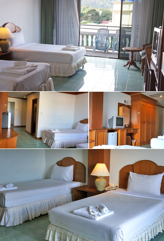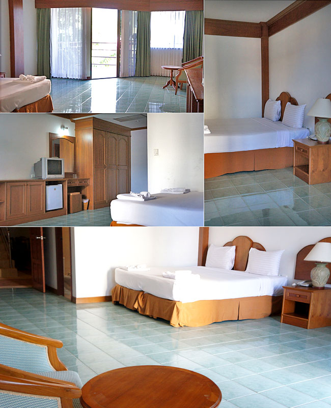 사진상에서 보면 왼편 초록색 발코니 쪽이 스탠다드룸. 그리고 오른편 스탠다드로 2층위치에 수영장이 있고, 그위로 빨간색 발코니를 가지고 있는 곳이 디럭스룸이다..