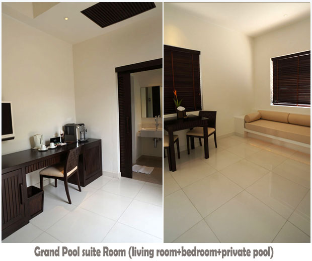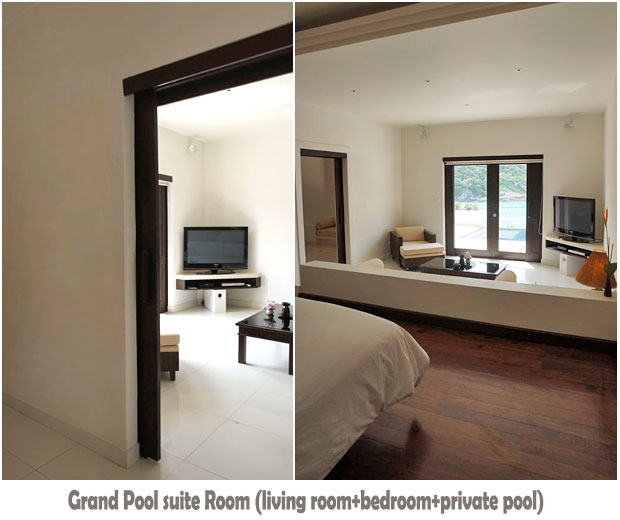 기존룸에 추가적으로 생긴 객실은 풀빌라로 그랜드 풀스윗과 2개의 침실을 소유하고 있는 2베드 그랜드 풀 스윗룸, 그리고 빌라내 야외 자쿠지겸한 작은 프런지 풀 형식의 스파 풀스윗이다..
