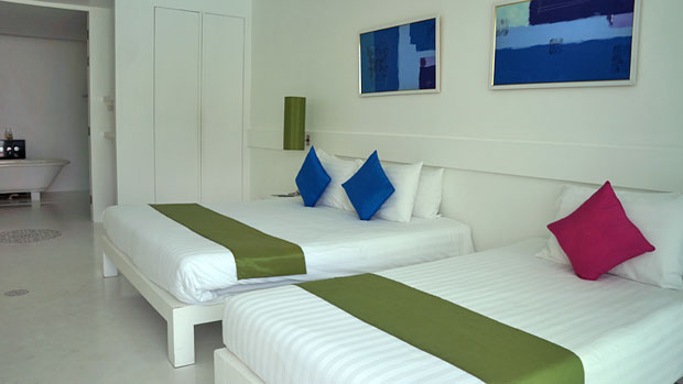 기본적으로 엑세스나 일반 디럭스의 객실 내부는 동일하지만, 우리가 묵는 3번 건물에 있는 디럭스룸의 경우 객실 사이트가 크게 나와 우리와 같은 욕실 구조지만, 객실내 더블침대, 싱글 침대 하나로 이루어진 트리플 스타일의 객실이다..