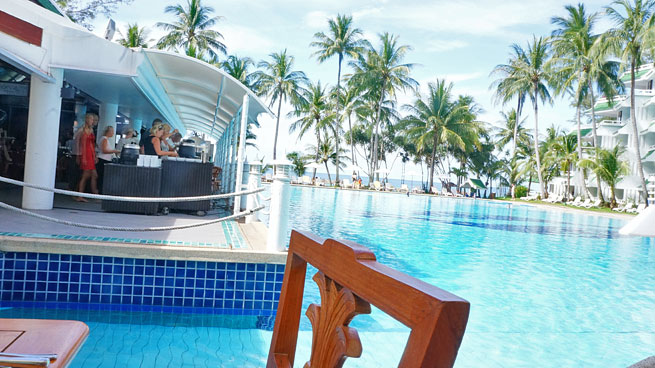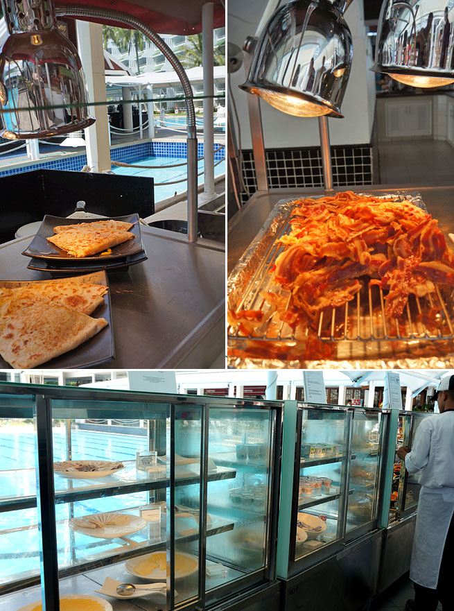 메인 카페 조식당은 실내이라 훨씬 나을듯 하지만, 우리도 다른 노랑 머리 언냐.오빠들과 같이 풀장을 받치고 있는 형성인 빠카랑에서 먹기로...