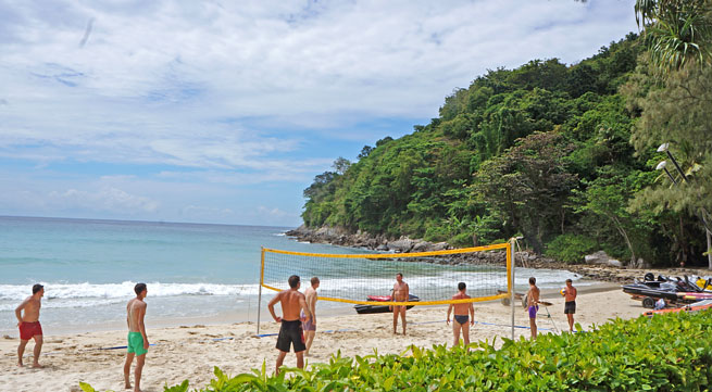 그 프로그램표 왼편으로는 이 찌는 더위에서도 발리볼을 하는 사람들도 있었고..