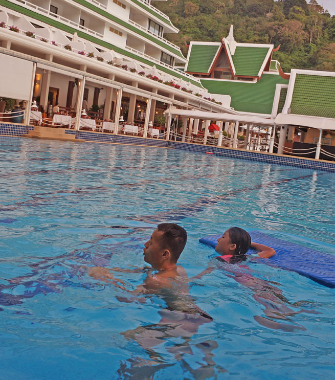 2잔의 커피와 흰밥과 태국 반찬으로 대충 요기를 하고 신랑은 잠시 사무실에 잔 업무 처리를 하러가고, 나머진 방으로 돌아와 아이들은 수영복 차림으로 우선 키즈 클럽으로 향한다..