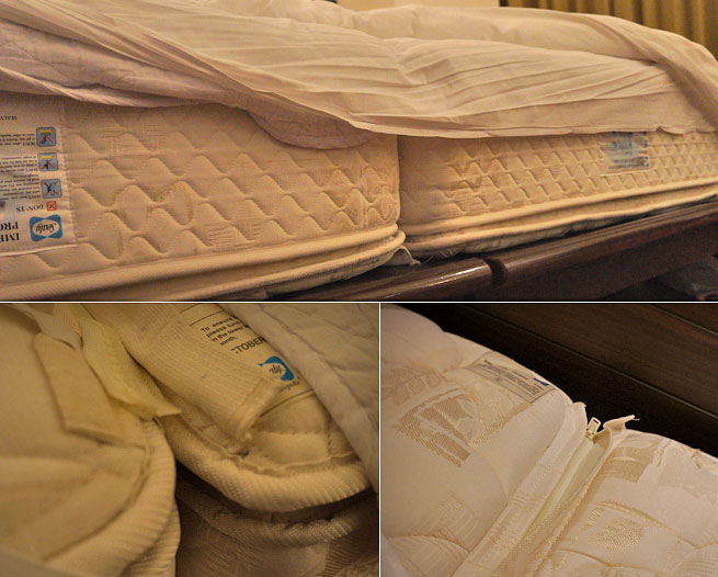침대를 살짝 붙여보니 침대와 침대 사이를 자크로 연결할수 있게 되어있던것이다..