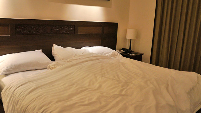 첫날은 이렇게 자고, 담날 메이드에게 이 상태로 셋팅 해 달라고 했더니 이 상태에서 커다란 시트로 보기 좋게 해 주고 가셨다..^^