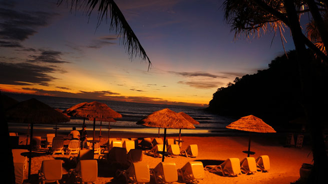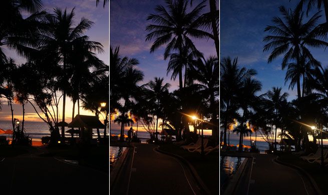낮동안은 열지 않았던 식당들의 조명을 이뿌게 키우고, 투숙객들을 유혹하고 있다...
